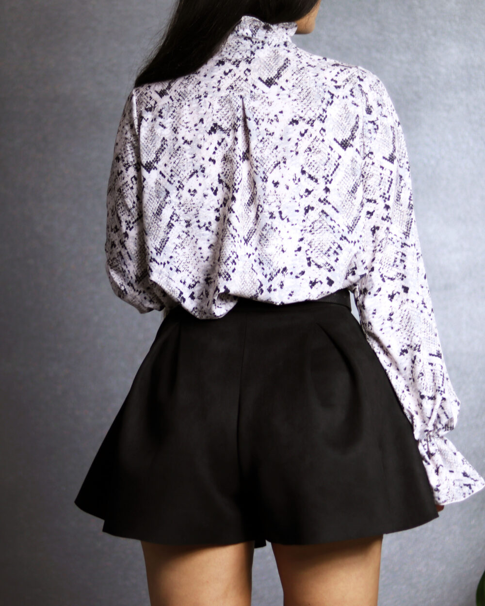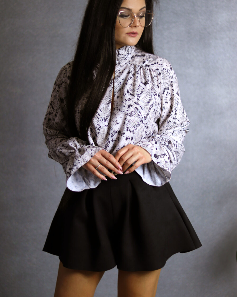Ten uniwersalny i ponadczasowy element w garderobie zagościć może zarówno w stylizacjach casualowych oraz eleganckich. Możliwości i rozwiązań jest wiele, a w naszej kolekcji ten model występuje w wersjach gładkich oraz w dwóch printach – wzór zwierzęcy i dla odmiany słodki dziewczęcy.