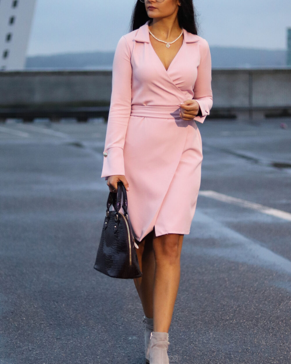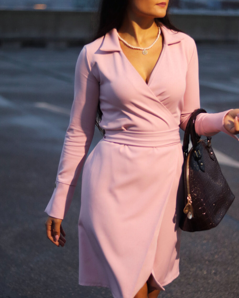 Kopertowa sukienka Dakota midi w przepięknych pastelowych kolorach to propozycja dla Pań idealna na co dzień, zarówno do pracy jak i szkoły. Świetnie sprawdzi się również na biznesowe spotkania.